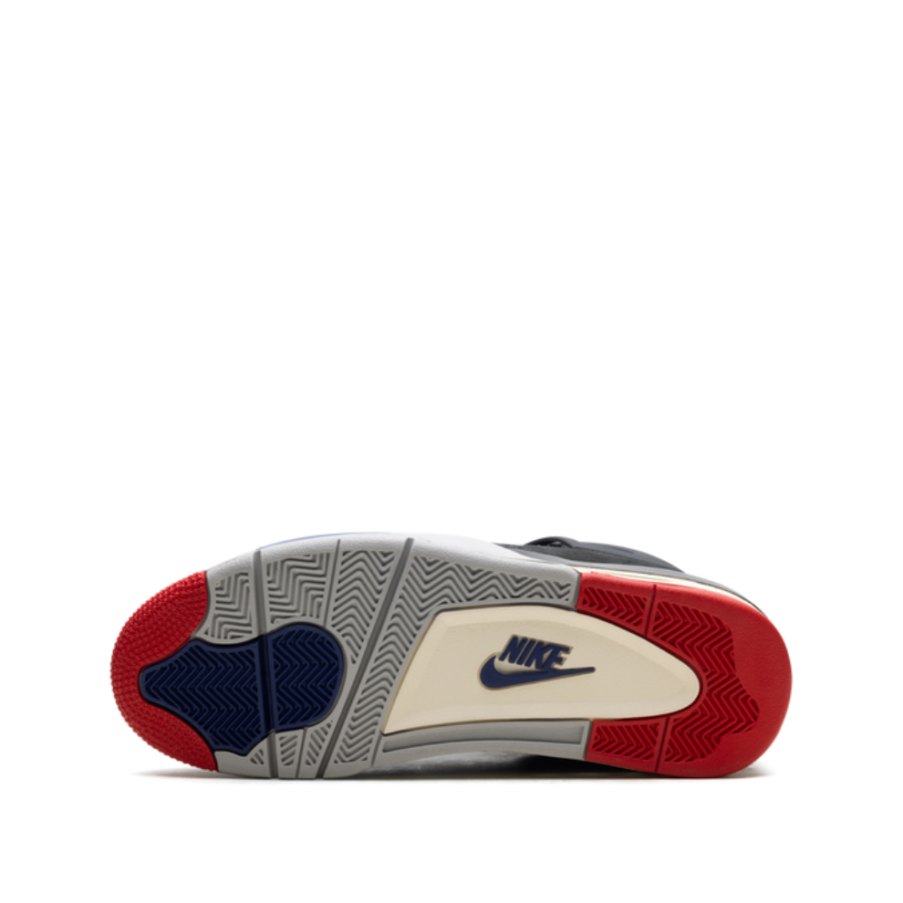 The Air Jordan 4 "Rare Air 2025" is a distinctive colorway of Michael Jordan's fourth signature shoe. This Jordan 4 has a primarily black upper that is accented with pops of blue and red. The 2025 "Rare Air" AJ4 incorporates the signature design details of the Air Jordan 4, including the mesh panels and wings on the side. Nike Air branding appears on the heel. The Air Jordan 4 "Rare Air" also stands out because of the removable patches on the tongue. R