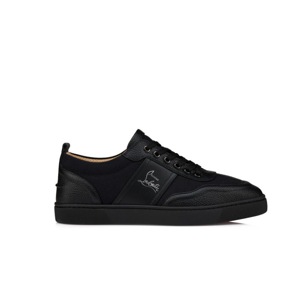 The retro-style Retero sneaker stands out thanks to its striking finishing touches. Set on a rubber sole, this black version is made from grained calf leather and canvas. This model features a supple contruction. It has a heel tab and a contrasting Maison Christian Louboutin signature on a tone-on-tone band on the side.