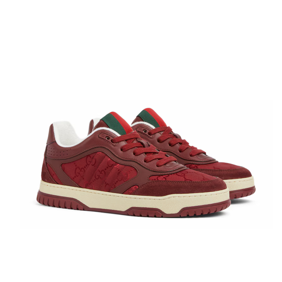 The Re-Web sees Gucci’s heritage stripes as a bold statement detail on a contemporary silhouette. This pair is crafted from GG nylon and features suede trims. Defined by multiple signature details, this new sneaker takes center stage with the bold green and red Web tongue.