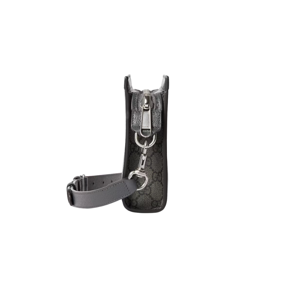 A selection of bags, including mini cross-body bags, briefcases and totes have been reshaped with functional details. Crafted from grey and black GG Supreme canvas, this Ophidia super mini bag comes with a detachable shoulder strap.