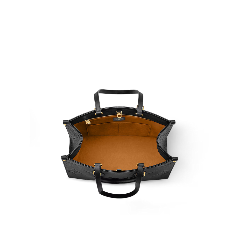 For Spring 2021, Louis Vuitton launches the Onthego MM tote bag in grained Monogram Empreinte, a soft leather that is embossed with a large and modern Monogram pattern. Thanks to the square shape, it boasts a generous capacity and can easily fit a laptop. Its articulated top handles and shoulder straps give carrying options.