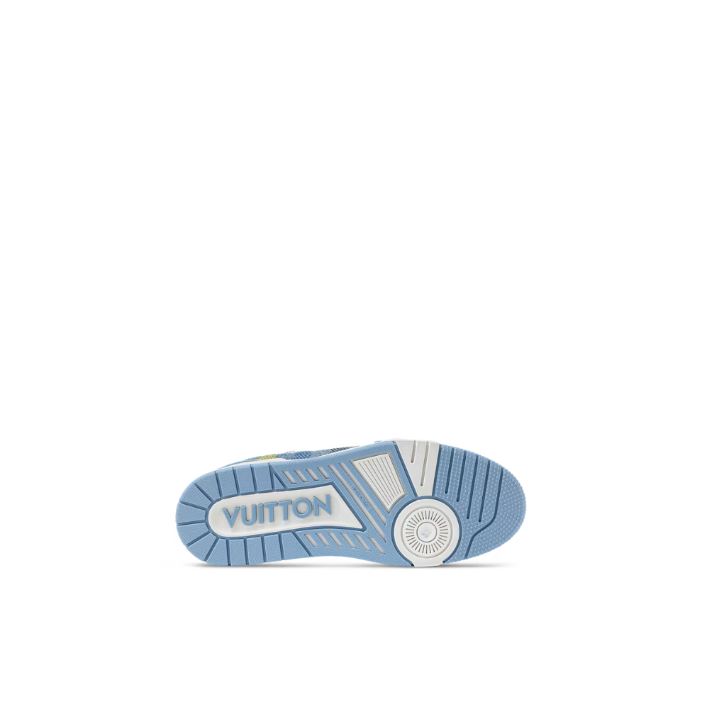 This edition of the LV Trainer sneaker comes in denim printed with the Lvers Damier pattern designed by Men's Artistic Director Pharrell Williams. The upper is complemented by rubber Vuitton and LV Initials signatures, while the outsole bears three Monogram Flowers. Originally designed by Virgil Abloh, this cult model was inspired by vintage basketball sneakers.