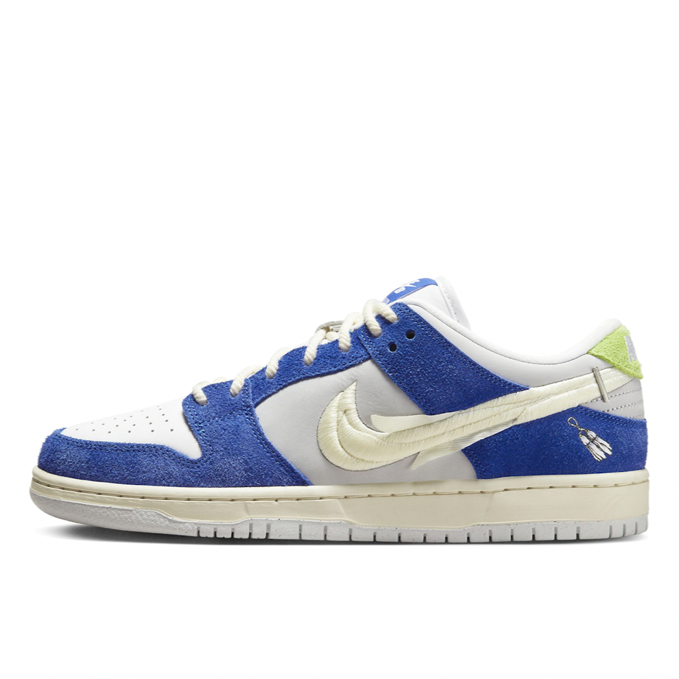 Designed in collaboration with Fly Streetwear founder Jeff Han, the Nike SB Dunk Low "Gardenia" are inspired by the fragrant gardenia flowers sold on the streets of Shanghai. This pair has a royal blue, light grey and white colourway and features a classic silhouette enhanced with embroidered graphics that remember sweet-scented bouquets and one of Jeff's earliest memories - skating through the perfumed city.
